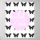 Elegantes Schwarz, Weiß und Rosa Design mit silhouetted Schmetterling Fliesen Hintergrund. Rosa Kreisüberlagerungen dienen als Leinwand für die weiße kalligrafische Schrift und ermöglichen so die "Wild and Free"-Nachricht an den Pop. Ideal für jedes Zimmer in einem Studentenwohnheim oder Zuhause.