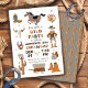 Fun Wild West Cowboy fête d'anniversaire. Il comprend des icônes occidentales, comme le cactus, les bottes de cow-boy, le lasso, le crâne, le fer à cheval, le vautour, le chariot, les montagnes, le butin, le cheval galopant et un cowboy. Des couleurs neutres pour un garçon ou une fille et idéal pour tout âge!