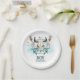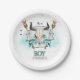 Holen Sie sich diese rustikalen, wildromantischen Teller im Weststil für Ihre Schädel- und Pfeile-Babydusche-Feier. Passen Sie mit dem Ehrengast und dem Datum der Babydusche an. Dargestellt mit einer süßen Schriftzeichen "It's a boy". Diese Baby-Duschpapier-Teller sind illustriert mit einem Aquarellschädel und einem Pfeil auf blauem Aquarellhintergrund. Das Design verfügt auch über einen Rahmen im Aztec-Stil mit blauen Federn. Entworfen, um unseren wilden Westen zu entsprechen | Rustikaler Schädel und Pfeile | Es ist eine Kollektion von Boy Baby Shower Invitation.