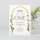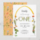 Feiern Sie Ihr kleines Mädchen mit einer fröhlichen orangefarbenen Wildblume ist ein 1. Geburtstag! Ein Aquarellswash von Regenbogen wünscht sich mit hübschen Wildblumen in sonnigen Farben. Umkehrt zu hellorange mit Alloverprint. Das Design ist perfekt für ein Baby zum ersten Geburtstag im Frühling oder im Sommer.
