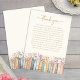 Wildblume Abschluss Danke Karte. Zeigen Sie Ihre Wertschätzung mit einer Dankeschön-Karte, die so charmant ist wie Ihre Abschluss-Feier. Mit handbemalten Aquarellbüchern und Wildblumen in sanftem Rosa, Blau, Grün und Gold bringt dieses Design eine raffinierte und gleichzeitig skurrile Touch in jede Dankbarkeit. Der Vintage Schriftart der Schreibmaschine und das anmutige Goldskript in Elfenbeinkulisse verleihen dem Werk ein edles literarisches Ambiente und machen es zu einem perfekten Ausdrucksmittel für Danksagungen mit Eleganz. Passen Sie den Wortlaut, die Schriftart und den Hintergrund an, um eine wirklich eigene, herzliche Botschaft zu schaffen. Schicken Sie uns ein Dankeschön, das Ihnen einen bleibenden Eindruck verlasst - fangen Sie an, sich noch heute zu personalisieren! (das Skript "danke" KANN NICHT geändert werden)