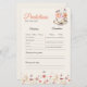 Die "Wildblume Baby is Brewing" Tee-Party-Vorhersagekarte ist ein lustiger und skurriler Weg, um die Zukunft des Babys zu schätzen! Mit einer delikaten Tasse Tee und weichen beige- und orangefarbenen Wildblumen lädt diese Karte die Gäste ein, Details wie Geburtsdatum, Gewicht oder sogar zukünftige Persönlichkeitsmerkmale des Babys vorherzusagen. Es fügt Ihrer Babydusche eine persönliche, naturlich inspirierte Touch hinzu und schafft für jeden eine bleibende Erinnerungen.