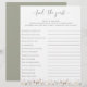Wildblume Baby Shower, Finden Sie das Gast-Spielblatt mit koordinierend grünen Farbrücken.