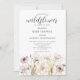 Unsere kleine Wildblume ist bereit zu blühen! Erdig elegante Wasserfarbenbotanicals boho Baby Dusche Einladung mit klassischer Serifenart und elegantem Schriftzeichen Kalligraphie Typ. Florale in rosa Farbtönen mit einer zarten Streuung von goldenem Glitzer. Ideal für Frühjahr, Sommer oder Herbst Babyduschen.