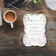 Mit dieser eleganten RSVP-Karte mit einem zarten Aquarellrand von Wildblumen in Weich-, Lavendel-, Pfirsich- und Elfenbein-Tönen können Sie stilvoll reagieren. Das Blumenwerk umrahmt Ihren Text wunderschön und schafft einen romantischen, im Garten inspirierten Look, der perfekt für Hochzeiten im Frühjahr und Sommer ist. Diese RSVP-Karte wurde für die vollständige Hochzeitskollektion der Eleganten Wildblume konzipiert und eignet sich ideal für Veranstaltungen im Freien, in der Natur oder auf dem Land. Personalisieren Sie die Formulierung, um Ihre Feier, und paaren Sie sie mit passenden Einladungen, speichern Sie die Daten und Hochzeitssignatur für eine zusammenhängende Suite.