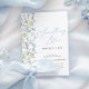 Feiern Sie die zukünftige Braut mit dieser eleganten Brautdusche-Einladung "Etwas Blau vor mir". Dieses reizvolle und elegante Hotel besticht durch seine Wildblume in sanften Blautönen. Ein dunkelblauer Bogen und eine anmutige Schriftzeichen-Typografie fügen eine romantische Touch hinzu und machen sie zu einer idealen Wahl für ein Party, eine Feder oder ein Brautparty mit blauen Blumenmotiven.