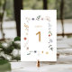 Niedliche Blütendusche Tischnummer mit Aquarellrahmen mit winzigen Wildblumen.