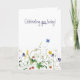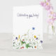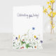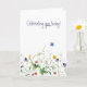 Wildblume mit blauem Schmetterling auf weißem Hintergrund. Text ist bearbeitbar. Die Hintergrundfarbe kann geändert werden.