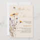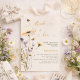 Ein beige Hintergrund. Mit Bienen dekoriert und Wildblumen in Violett und Rosa gestrichen. Personalisieren und fügen Sie einen Namen und Party-Details hinzu. Geschlechterneutral. Text: Bride to bee