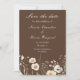 Hübsche Hochzeit speichern Sie das Datum Einladung mit Wildblumen in Beige und Creme. Ideal für einen Herbst oder eine Hochzeit im Herbst. Die Wörter können geändert werden, um Ihre eigenen Angaben oder Anforderungen Anzug