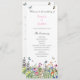 Dieses moderne, hübsche und böhmische Hochzeitsprogramm besticht durch farbenfrohe, zarte sommerliche Wildblumen mit Schmetterlingen, Hummeln und Ladybugs. Sie können alle Text- und Grafikplatzierungsdetails an Ihre spezifischen Anforderungen anpassen.