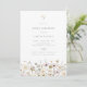Wildblume Baby Shower Einladung. Farbenfrohe Wildblumen, dunkelgraue Typografie und die blauen Farbunterdrückungen werden durch die Farbgebung harmonisch ergänzt.