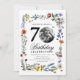 Ein elegantes Party Einladung-Design "70. Geburtstag" mit personalisiertem Foto, moderner Typografie und Wildblume-Motiv.