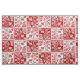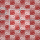 Dieser einzigartige mit Ziegeln gedeckte Gewebeentwurf hat ein wiederholendes und wechselndes quadratischer Block-/Schachbretmuster, das mit den roten und weißen Blumen-Silhouetten gefüllt wird. Die hübschen, mit Ziegeln gedeckten Blumen haben Dornen und ähneln englischen wilden Rosen, dennoch lassen die Farben und der Entwurf des Musters es ein wenig Vintages viktorianisches/Kunst Nouveau Orientale schauen. Dieses ist ein sehr mutiges Blumengewebe und wird einen ursprünglichen, ins Auge fallenden Zusatz zu Ihrer Wohngestaltung und Handwerksprojekte machen.
