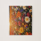 AI erstellte ein realistisches Bild von Wildblumen in Gelb, Blau, Orange, Weiß und Rosa mit einem Sonnenaufgang im Hintergrund.