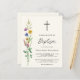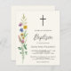 Dieses Budget Taufen Einladung ist mit Wildblumen und einem Kreuz auf einem weichen cremefarbenen Hintergrund dekoriert. Einfach anpassbar. Original Wasserfarbe © Michele Davies.