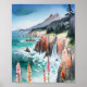 Wildblume Wasserfarbe Serene Küste Landschaft Poster
