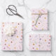 Schöne Aquarell-Wildblumen auf rosa Wappenpapier-Blättern eignen sich hervorragend für die Verpackung von Babyduschgeschenken. PASSENDE Artikel in unserer Sammlung.