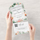 Entwerfen Sie die perfekte Hochzeitssuite mit dieser informellen, blumengeschmückten Hochzeitseinladung, die eine romantische Aquarellbilder von grünen und orangefarbenen Wildblumen enthält. Bearbeiten Sie die Vorlagenfelder einfach, um die Braut- und Bräutigamen sowie Ihre Daten- und Standortangaben in klassischen und eleganten schwarzen Kalligraphie-Schriftart hinzuzufügen. Fügen Sie Ihren QR-Code hinzu, um Ihre Gäste auf Ihre Hochzeitswebsite zu leiten, um weitere Informationen zu erhalten oder um online UAWG