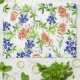 Aquarellblaue Moskitonetze und indische Pinselstriche auf weißem Hintergrund.