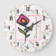 Wildblumen mit rosa und grünem Longsteg Personalis Große Wanduhr