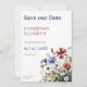 Diese Wildblumen Ankündigung Datum freihalten Design besticht durch ein elegantes Bouquet mit böhmischen Wildblumen in verschiedenen Farben. Fügen Sie die Namen der Braut und der Bräuche, den Ort der Hochzeit und das Datum zu personalisieren. Perfektes Design für Bräute, die nach einem femininen und einfachen Look für ihre Hochzeitsankündigung suchen.