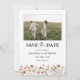 Wildblumen Save the Date mit Foto-Flachkarte. Diese stilvolle und elegante Save the Date-Einladung besticht durch wunderschöne handbemalte Aquarellfarben-Wildblumen. Finden Sie passende Artikel in der White Wildblume Dreams Collection.