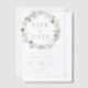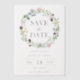Elegante Wildblumen, die eine durchsichtige Papierhochzeit in Pergament schreiben, speichern das Datum mit einem einfachen und minimalistischen Design und einer Mischung aus Drehbuch und Serifen-Schriftart. Das Design besticht durch hübsche Blume und grüne Blätter, die sich ideal für eine Blumenzettel oder eine Hochzeitsfeier im Sommer eignen. Bitte Karo der Kollektion für passende Produkte aus dem Sortiment.