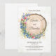 Wildblumen in Aquarellfarbe und Blueberry Rustikale Hochzeit sichern die Datumskarte. Romantischer Stil mit Heidelbeeren, Lavendel-Blume, Klee und Eukalyptus ist perfekt für eine rustikale Hochzeit im Sommer. Grundlage der Komposition ist ein Kranz von Wildblumen und ein Holzkreis. Wasserfarbener Spritzer ergänzt die Zusammensetzung von Blume und Beeren und verleiht ihm einen besonderen Charme.