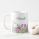 Diese Keramik Kaffee Tasse zeichnet sich durch eine hübsche Wildblume mit rosa, violett Blumen und Grün. Personalisieren Sie diese Tasse mit Ihrem Namen oder einem anderen Text. Diese Tasse wäre eine nachdenkliche Hauswärme oder ein Geburtstagsgeschenk.