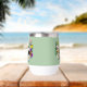 Ein niedliches Schwarz-Weiß-Schild, das zwischen wilden Blume und Pilzen in einem grünen Hintergrund sitzt