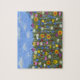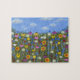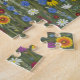 Ein Puzzle mit schönen Wildblumen wie weißen Gänseblümchen, violetten und gelben Sonnenhüten und blauen Kornblumen. Originalkunstwerk von WBfloraldesigns.
