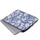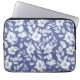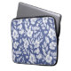 Illustrierte wilde Rose, Blätter und Knospen mit Bienen und Schmetterlingen auf blauem Hintergrund. Inspiriert durch die Natur und klassische blau-weiße Designs.