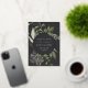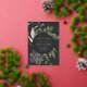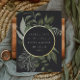 Unsere Wild Meadow Save the Date-Karte umgibt Ihre Hochzeitsdetails mit einem runden Rahmen von lebendigem Wasserfarbenfolien in verblassten Moosfarben und Salbei-Grün, bestickt mit Goldfolie auf einem reichen schwarzen Holzkohle-Hintergrund. Moderne und Bio Wahl für Frühjahr- oder Sommerhochzeiten mit kunstvoll bemalten botanischen Elementen.