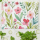 A charming seamless pattern of watercolor wildflowers in shades of pink, red, and green. This cheerful design is ideal for any room with nature-inspired decor.