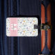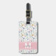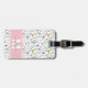 Personalized Elegant Wildflower Luggage Tag. Add a soft, colorful touch to your bags with this elegant design featuring a delicate wildflower pattern in pastel shades of pink, purple, blue, yellow, and green on a white background. A pink bar stretches across the bottom half with a white and gray monogram for a graceful, personalized accent. The back provides space for contact information. All colors can be changed to match your style. Perfect for luggage, diaper bags, gym bags, or travel gear.