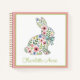 This personalized notebook features a beautiful spring rabbit covered in wildflowers in soft shades of pink, blue and green. Personalize with your choice of name or special text.