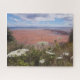 Delicate white wildflowers bloom along a coastal edge overlooking a striking red shoreline and open sea beyond. The contrast between fragile blooms and vast landscape creates a powerful sense of balance. Grasses bend gently in the coastal breeze while clouds stretch across the horizon. This puzzle offers dynamic color zones and a strong sense of openness. It reflects the quiet resilience of plants thriving at the edge of land and water. A refreshing puzzle that feels expansive yet grounded.
