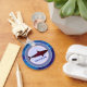 Ein roter grafischer Hai in einem blauen Kreis - Sie können ihn personalisieren und das Wort "Hai" ändern