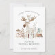 Eine whimsical Aquarellwald Tiere Schwangerschaft Ankündigung, mit einer niedlich bemalten Aquarellmühle Elche und Vogel.