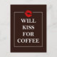 Will Kiss for Coffee Geschenk Original Design Java Postkarte