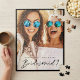 Will you be my bridesmaid? Custom Foto von jigsaw puzzle. Unser Design Feature hat full foto design to display your own special foto. "Bridesmaid?" is designed in a trendy black brush script typographic design overlay over your own custom foto.
