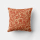 Throwkissen in einem Vintagen Damastmuster Williams Morris der Distel-Blumen und -Blätter, in der tiefen Mandarine, auf einem orange Pastellhintergrund, digital erhöht und gefärbt
