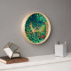 Uhr in einem William Morris-Wandteppich in einem Fantasy-Wald-Ambiente - hellgesprenkeltes Hirsch in einem üppigen, tiefblauen und grünen Hintergrund von Blätter und Blume, mit roten Tulpen versehen
