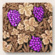 Untersetzer in einem Vintagen William Morris Tapestry-Muster tiefvioletter lila Trauben vor einem Hintergrund von hellen bis dunkelschokoladenbraunen Reben und Blätter, digital verbessert und farbig