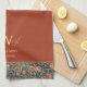 Weiße William-Morris-Muster, orientalisch-orangefarbene Blüte, persisch-türkisfarbenes aquamarines Blau, Vintage Hollandparkkunst, britisch-englisch-berühmter Künstler, traditionelle Familiennamen-Blume, "art Deko custom monogram", "personalisiertes Küchentuch", "personal name art nouveau", "elegantes klassisches Geschirr", "add your own text"