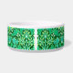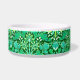 Die Schüssel ist in einem Vintagen William Morris-Muster aus Hyazinthen, Tulpen und Blätter in Smaragdgrün und Jadegrün gehalten, mit Aqua-Weiß-Akzent, auf einem tiefen grünen Hintergrund des Waldes