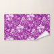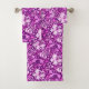 Handtuch-Set in einem Vintagen William Morris Blumendruck aus stilisierten Lilien und Iren, digital verbessert und farbig, in sanften Amethysttönen lila, Pflaume, lila und weiß auf einem tief amethystischen lila Hintergrund