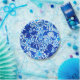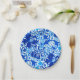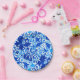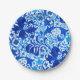 Papier-Teller in einem Vintagen William Morris-Blumendruck aus stilisierten Lilien und Iren, digital verbessert und farbig, in den Farben tiefblaues Kobalt, Ceruléblau und hellblaues Blau auf weißem Hintergrund