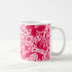Tasse in einem Vintagen William Morris Blumendruck aus stilisierten Lilien und Iren, digital verstärkt und farbig, in hellen bis tiefgründigen Fuchsienfarben und Rot in Weißwein